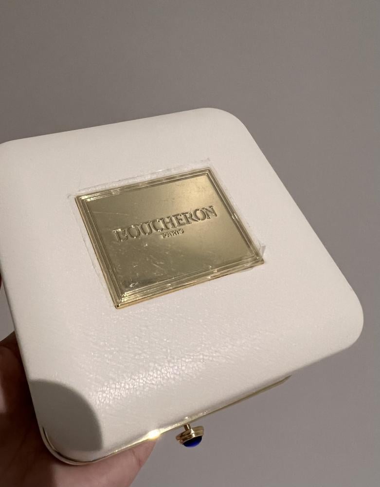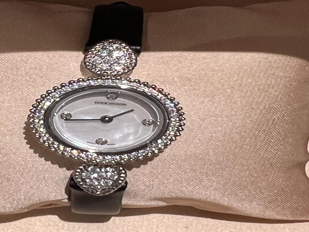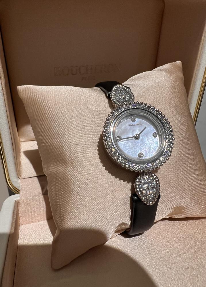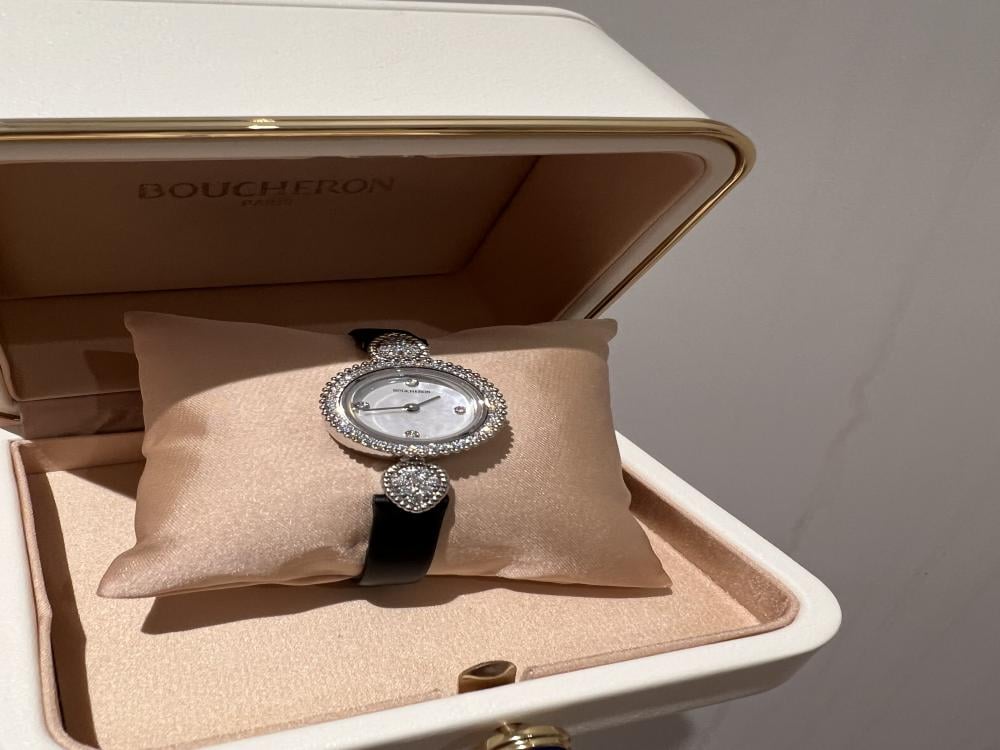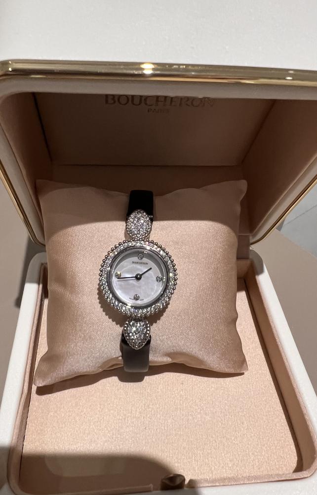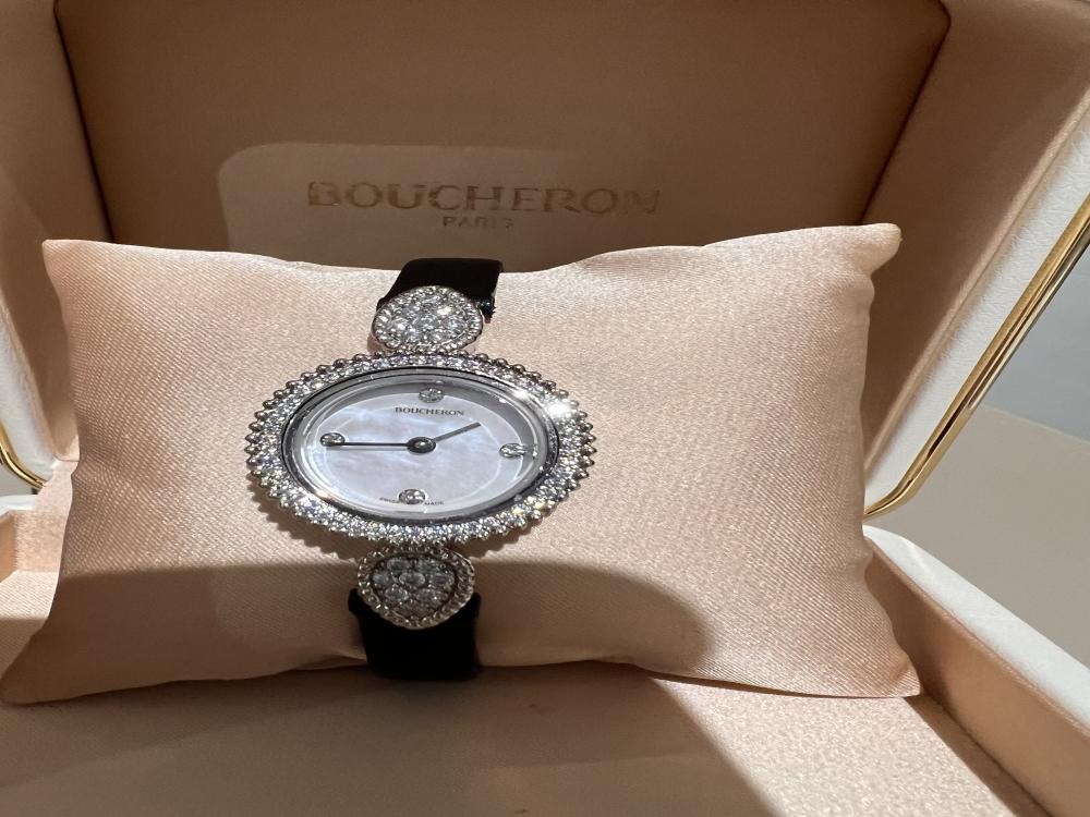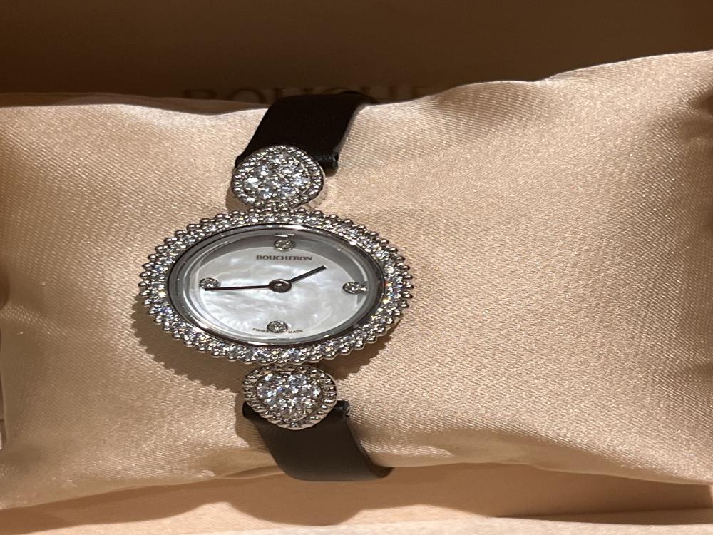 ساعة بوشرون بطوق الماس صناعي + ستراب اسود
