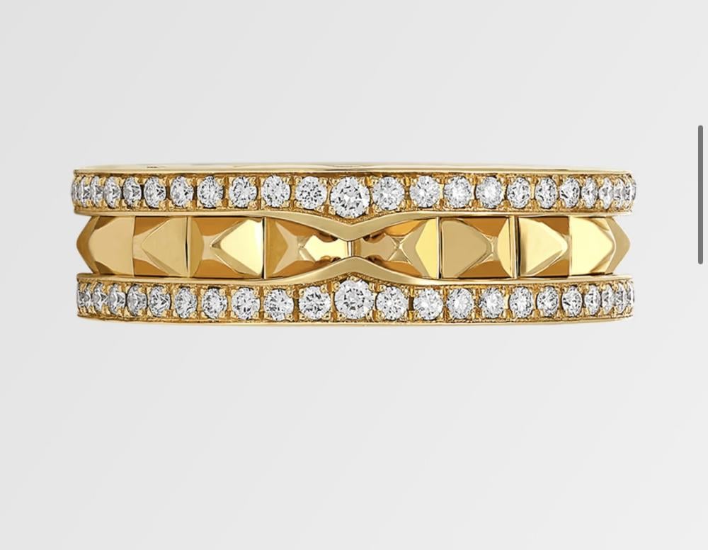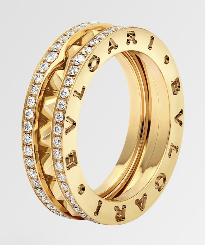 ارتقِ بإطلالتك مع دبلة B.Zero1 من بولغاري المرصعة بالألماس، قطعة أيقونية تعكس العمق المعماري والجمال الهندسي بتوقيع دار بولغاري.