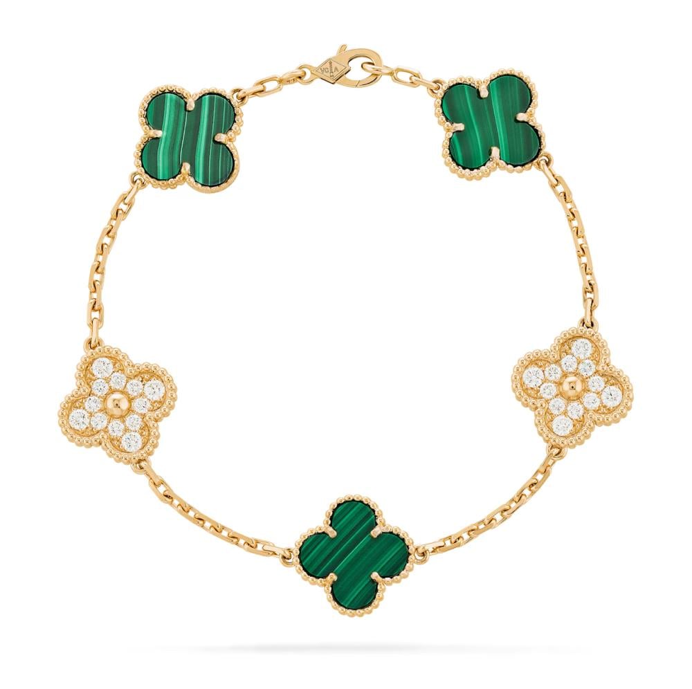 ✨ احتضني التميز في كل تفصيلة مع اسوارة الخمس وردات من فان كلييف، تصميم يجمع بين الذهب الوردي عيار 18 والأناقة الخالدة لزهرة الحظ الأيقونية.